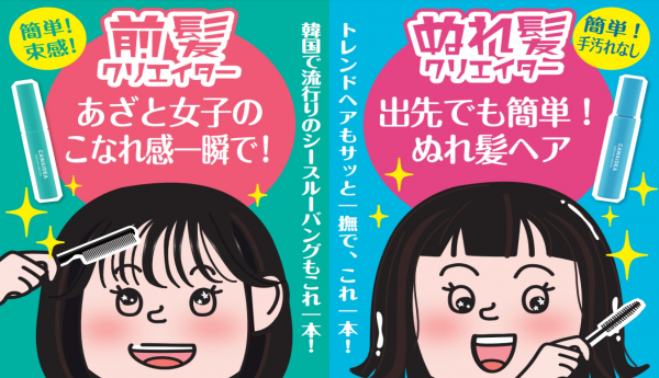 そこで今回発売いたします「ぬれ髪クリエイター」「前髪クリエイター」は、それぞれ1本で流行りのヘアスタイルを簡単に作れるアイテムになっています。