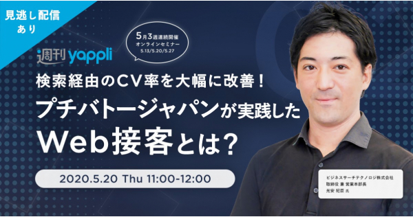 ビジネスサーチテクノロジ 株式会社(本社:東京都新宿区、代表取締役社長:工藤智昭、以下BST)は、2021年5月20日(木)に開催される株式会社ヤプリ主催「モバイルシフトした生活者視点のECとは?」オンラインセミナーに登壇いたします。