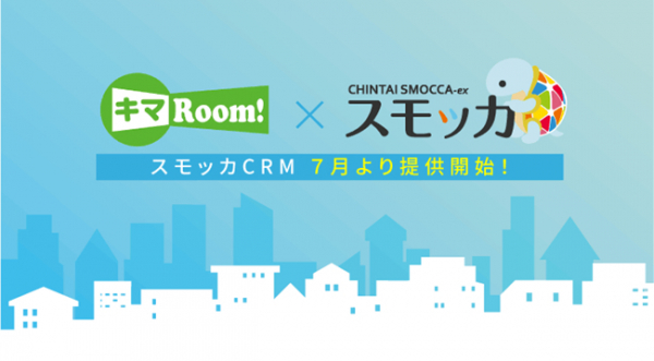 不動産会社向けのIT支援ツール「キマRoom!」シリーズを提供する株式会社セイルボート(本社:広島県広島市 東京本部:東京都新宿区、代表取締役:西野 量、以下セイルボート)は賃貸情報サービス「賃貸スモッカ」(以下スモッカ)を提供する株式会社じげん(本社:東京都港区、代表取締役 社長執行役員CEO:平尾丈、東証一部:3679、以下じげん)と提携し、顧客管理・追客支援ツール「スモッカCRM」を開発、7月より提供を開始することをお知らせいたします。