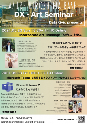 広島を拠点にアートマネジメント業務を手掛けているタメンタイ合同会社の代表・山本功(やまもと・いさお)と、アーティストの有田大貴(ありた・たいき)が登壇する「アート思考」を考えるイベント「Incorporate Art Thinking!『ちがい』を学ぶ」が、2021年5月23日(日)にオンラインで開催されます。山口フィナンシャルグループの株式会社データ・キュービック(本店:山口県下関市)が主催。同社が運営する地域のデジタルトランスフォーメーション推進施設「Azure Hiroshima Base」(広島県広島市中区)から配信を行います。