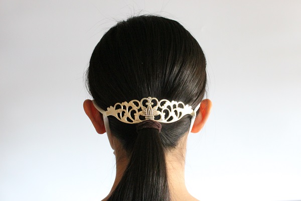 【錺之マスクバンド】は、長時間マスクをかけることによる耳の痛みを軽減し、おしゃれなヘアアクセサリーとしても楽しめるアイテムです。日本の伝統的な錺金具のデザインを現代風にアレンジしており、幅広い年齢層の方に似合います。