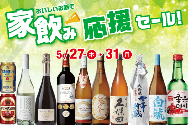 全国に182店舗で酒の専門店をチェーン展開する株式会社リカーマウンテン(本社:京都市)は、5月27日(木)〜31日(月)の5日間、深夜営業店舗を除く116店舗で「美味しいお酒で家飲み応援セール」を開催いたします。