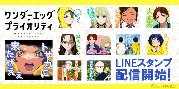 日本テレビ×ANIPLEXプロデュースのアニメ業界を震撼させる衝撃作。完全新作オリジナルTVアニメーション『ワンダーエッグ・プライオリティ』がLINEスタンプとなって株式会社インクルーズの販売アカウントより初登場!