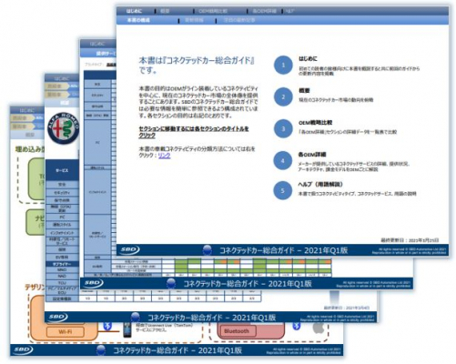 英国に本社を置き自動車技術に関する調査およびコンサルティングを手掛けるSBD Automotiveジャパン(名古屋市)では、コネクテッドカー市場の最新動向、各OEMが提供しているコネクテッドサービスに関する調査を継続的に行っており、欧州、北米、中国における最新情報をまとめたレポート「コネクテッドカー総合ガイド」を四半期ごとに更新、その最新版を2021年5月12日に発行いたしました。
