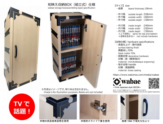 今回、プレゼントの対象となる「和映え収納 BOX」は、実はのちほど説明させていただく「和映え」に使用される金物類の組み合わせと板加工の工夫で構成された列記とした「和映え」のアレンジ例です。この「和映え収納 BOX」の試作や商品開発の工程がテレビ番組で大きな話題となり、多くの方から商品化のご要望を頂戴いたしました。