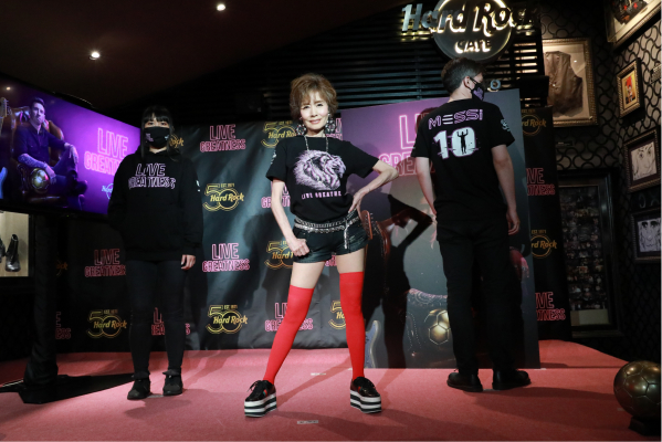 様々な音楽を聴きながら料理が楽しめるアメリカンレストラン「ハードロックカフェ」では、創業50周年を記念して、2021年6月14日よりサッカー選手のリオネル・メッシ氏をアンバサダーに起用した「Live Greatness キャンペーン」ローンチイベントが開催され、メッシ選手を敬愛するアーティストの小柳ルミ子さんがイベントに登場した。
