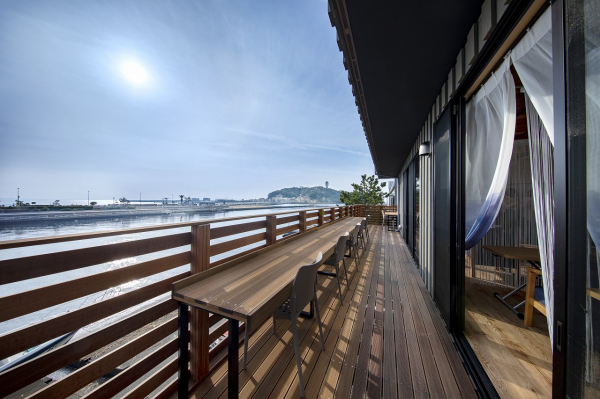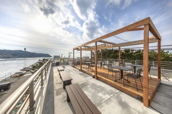 屋内からはもちろん、2Fのバルコニーや、屋上のテラスから江ノ島を一望できます。海風に当たり、気分転換やランチ休憩など贅沢な時間をお過ごしいただけます。