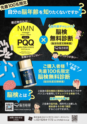 自分の脳年齢知りたくないですか? 認知機能検査「脳検(脳活性度定期検査)」とタイアップした新しいサプリメント「NMN renage PQQ」