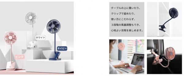 デスクや車のシートなどに取り付けができる便利な扇風機クリップ付き卓上扇風機RO・KU・ROの発売開始