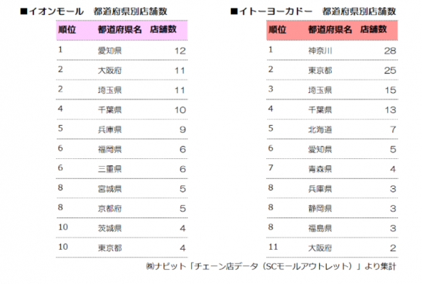 2位のイオンモール、3位のイトーヨーカドーは、テレビCM等でもおなじみですね。