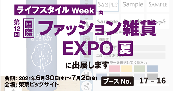 【カスタム・オーダー商品のWEB販促でお困りの方へ】6/30〜7/2に開催される「第12回 国際 ファッション雑貨EXPO【夏】」(東京ビッグサイト 青海展示棟)に出展します