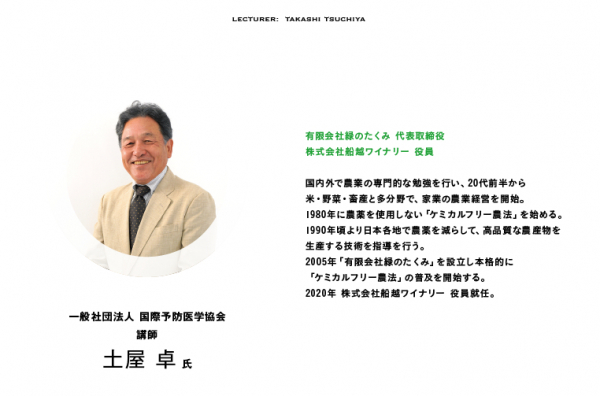 白澤卓二氏が、研究・分析してきた科学的エビデンスに基づく農学を、土屋卓氏ケミカルフリー農法の実践指導をしていただけます。