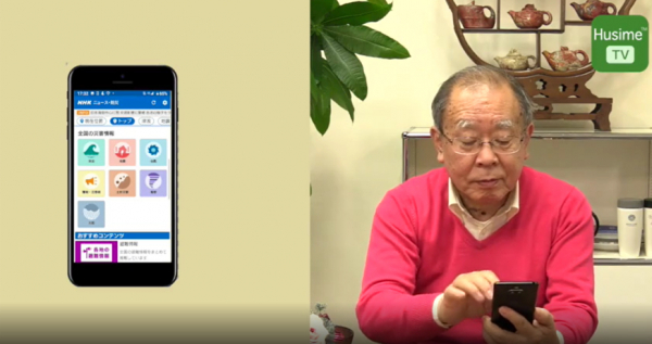 AOSデータ社、シニア向け動画チャンネル「Husime TV」の新動画、 『70代のスマホ挑戦「NHKニュース防災アプリ」デジタルって人生より難しいもんか 笑』