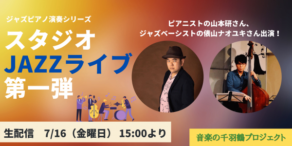 ・ジャズライブ第一弾はピアニスト山本研さんとジャズベーシスト俵山ナオユキさんによる無観客ジャズスタジオライブ (7月16日(金) 15時より無料生配信)
