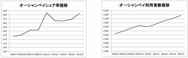 株式会社オーシャンシステム(本社:新潟県三条市、代表取締役社長:樋口勝人)は、当社独自開発の後払いキャッシュレス決済『Ocean(オーシャン)ペイ』の利用数が2021年4月は30,066件、5月は33,902件と2020年7月サービス開始以来、初めて3万件を突破したことを本日発表いたします。