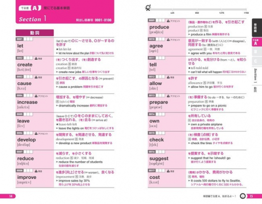 ・見出し語を100語ごとのセクションに区切りました。(1〜3級)