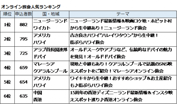 人気の観光地「ハワイ」でも、オンライン旅会開催当初の2020年7月は申込者が9名でしたが、直近の2021年5月30日に開催したイベントでは申込者が795名と、1回当たりの申込者が約90倍にまで急増する人気イベントになりました。