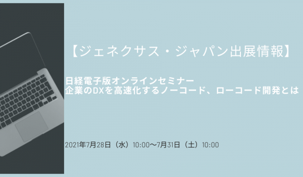 ジェネクサス・ジャパン株式会社は、7月28日〜31日開催の日経電子版オンラインセミナー「日経電子版オンラインセミナー 企業のDXを高速化するノーコード、ローコード開発とは」に協賛いたします。