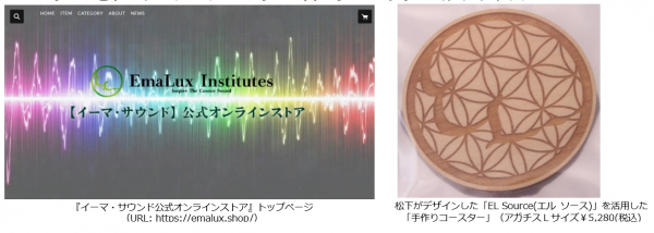 販売する商品は、松下がデザインしたオリジナルマーク「EL Source(エル ソース)」を活用し、普段飲む水にエネルギーが転写される「手作りコースター」などのオリジナル商品の他に、松下のお気に入り商品に最新のEmaLux(イマラックス)技術を組み合わせたコラボ商品も販売します。これまでは、限られた方しか入手できなかった商品が全国どこでも購入できるようになったことで、より多くの方が本来あるべき健全な状態に整えるセルフケアが自宅にいながら可能になります。