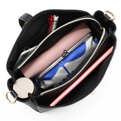 ファスナー付きのメインルームに小分けができるオープンポケットの三層構造で機能性にも優れ、ちょっとしたお出かけや旅行に便利です。