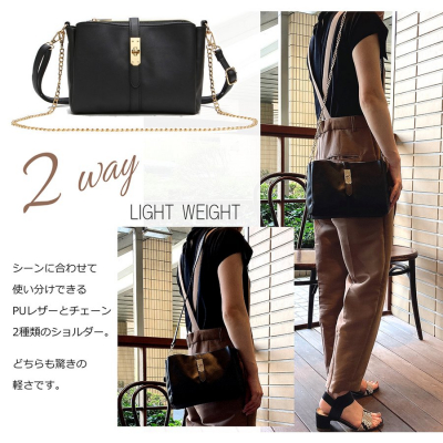 サイズ:タテ18cm、ヨコ24cm、マチ8cm、ショルダー長さ135cm、チェーン長さ107cm