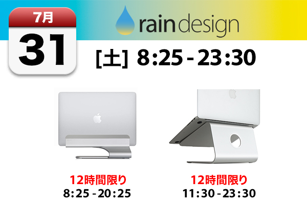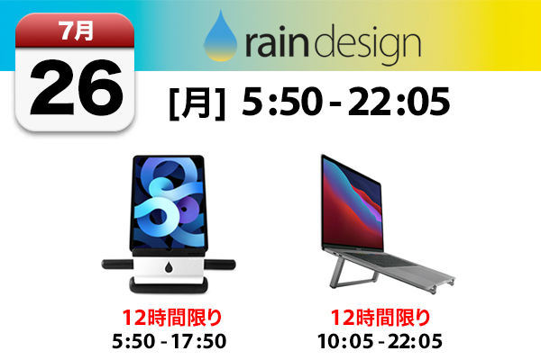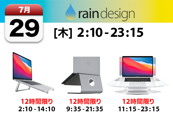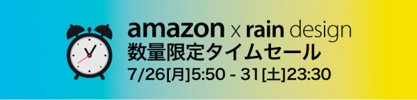 Rain Designの人気モデル、mStand MacBookスタンドやiRest iPadスタンドがAmazon「数量限定タイムセール」に初出品。日頃の感謝を込めて12時間だけのセールを開催。