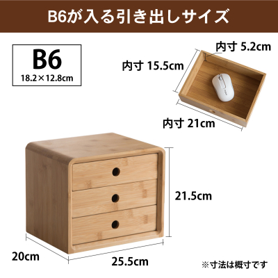 Mサイズ:B6サイズ書類サイズ(引き出し内寸21×15.5×5.2cm、本体:25.5×21.5×20cm)