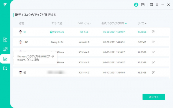 【最新バージョン】異OS間のLINEデータ直転送できるiTransor for LINE 3.0新登場!バックアップから端末に復元までも実現