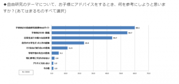 一般社団法人日本能率協会が2018年に実施したアンケートによると、保護者の方の4割以上がお子様の自由研究のテーマ選びで「日常生活でのさまざまな出来事」を参考にしているそうです。身近な題材は、研究のテーマとしても取り入れやすいことがわかります。