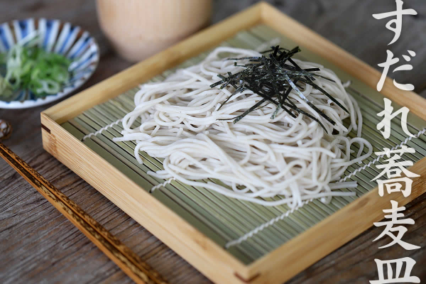 食卓に水切りの滴が落ちない竹製箱型すだれ蕎麦皿