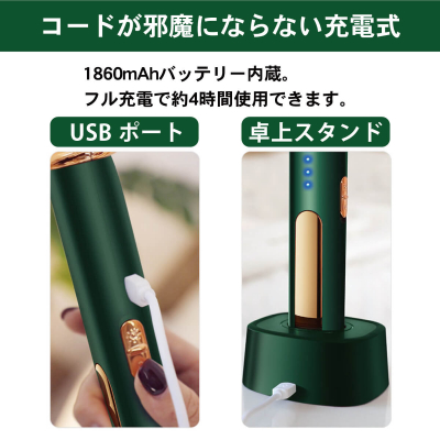 ・【 USB充電式 】 本体側、スタンド側のどちらでも充電できる。