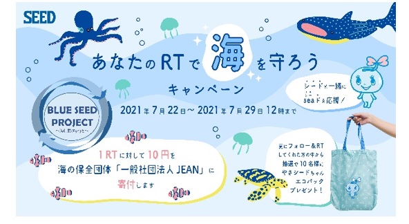 尚、この活動は株式会社シード広報担当(公式)Twitterアカウント「@SEED_koho」でも発信し、7月22日の海の日より1週間、1リツイートに対して10円が寄付となる“あなたのRTで海を守ろうキャンペーン”を同時に行います。