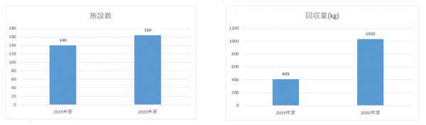 回収拠点 140施設→164施設 回収実績 409kg→1,035kg