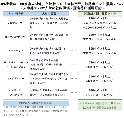 また本検定は、DXレベル認定制度を実施しており、成績優秀者はスコアに応じ、以下のレベル認定証が発行されます。企業の人事・事業部でのレベル認定・評価が可能です。