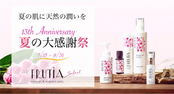 ラブピー・プラネット株式会社(本社:東京都港区、代表取締役:大芝太郎)は、13周年を記念し、ナチュラルスキンケアブランドFRUTiA(フルティア)の夏季特別セールを2021年7月15日より開始いたしました。
