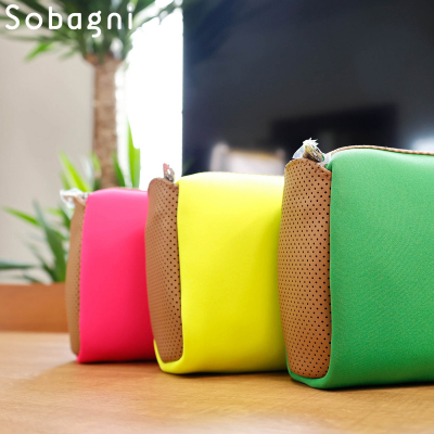 【新商品発売】 ポーチバッグ Sobagni × mutaのコラボ商品 ソバニ 最高峰エシカルレザーcontinuaを使用!! ビビットカラーが映えるネオプレーン素材のポーチバッグ