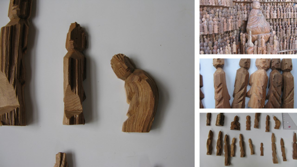 ・井波の彫刻家で工芸作家の谷口信夫さんが制作する「円空仏(木の仏像)」