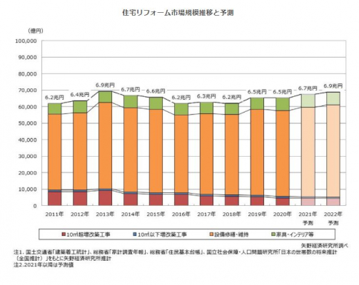 【矢野経済研究所プレスリリース】住宅リフォーム市場に関する調査を実施(2021年)〜2020年の市場は6.5兆円、2021年は6.7兆円を予測、コロナ禍で高まった住空間への関心を背景に微増の見込〜