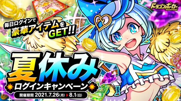 『ドラゴンポーカー』で「夏休みログインキャンペーン」が7月26日(月)より開催!毎日ログインして豪華アイテムを GET!