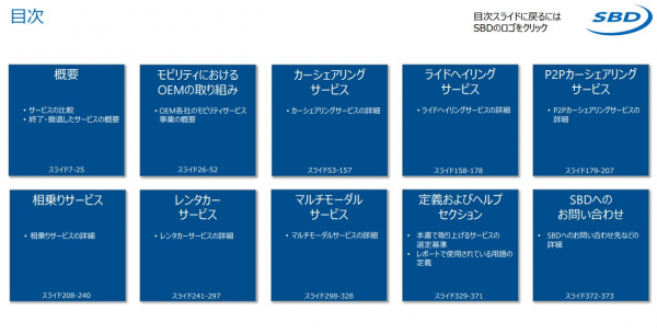 英国に本社を置き自動車技術に関する調査およびコンサルティングを手掛けるSBD Automotiveジャパン(名古屋市)では、欧州、米国、中国で自動車メーカー各社が展開しているモビリティサービスに関する調査を継続的に行っており、最新情報をまとめたレポート「モビリティサービス最新動向ガイド」を四半期ごとに更新、その最新版を2021年7月21日に発行いたしました。