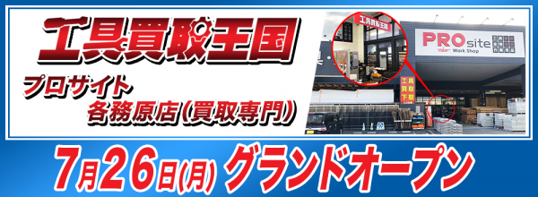 工具買取王国は、電動工具類の買取で建設関連業の皆様をサポートするため、岐阜県各務原市にあるPROsite各務原インター店内に工具買取専門店を7月26日オープンしました。