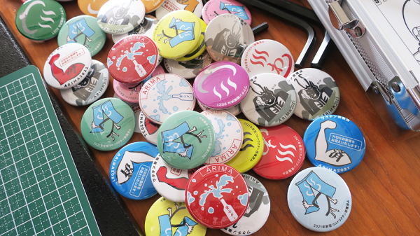 神戸芸術工科大学×有馬温泉観光協会 「新型コロナワクチン接種済み」缶バッチのデザイン