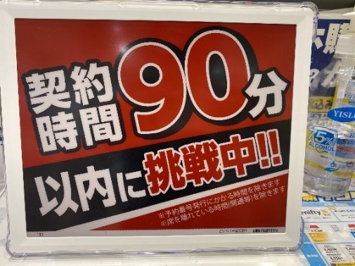 時間がかかりがちな契約ですが、当社は契約台数が何台であっても、90分以内に契約完了できるようにノジマ全店で取り組んでおります。90分を超えてしまった場合には、1分につきノジマポイントを100ポイント(100円分)差し上げております。