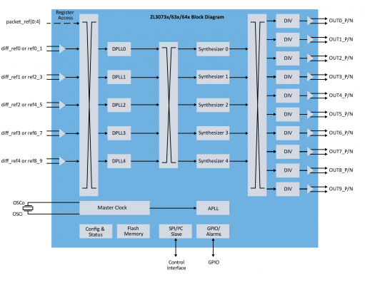 Microchip社のZL3073x/63x/64xネットワーク同期プラットフォームは、OX-601 OCXO(https://www.microsemi.com/product-directory/5481)(恒温槽型水晶振動子オシレータ)等の高精度5Gオシレータ ファミリとシームレスに結合し、5Gネットワーク事業者にトータルシステム ソリューションを提供します。
