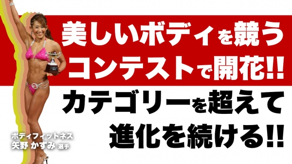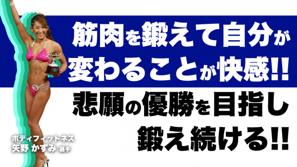 43歳の時に、美ボディを競うコンテストに出場したことがきっかけで競技を始められた矢野選手。