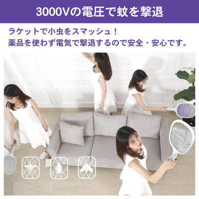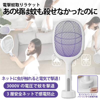 ラケットで退治!寝ている間に撃退できる2WAY電撃蚊取りラケット ビリビリ蚊トラップシリーズ 「あの頃は蚊も殺せなかったのに」 miraiON