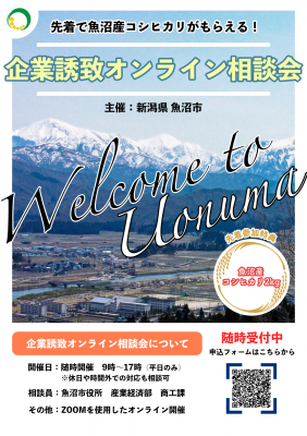 【先着で魚沼産コシヒカリがもらえる】企業誘致オンライン相談会in新潟県魚沼市