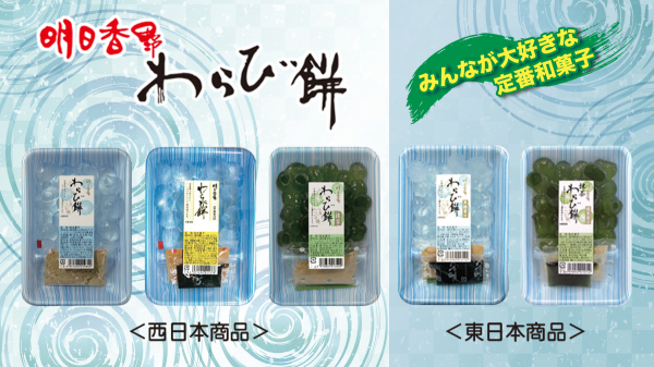 全国のスーパーマーケットでよく見かける、水色トレーに入った透明なわらび餅。年間1億粒以上製造する元祖透明わらび餅でおなじみの和菓子専科・明日香野は、2022年8月で設立45周年を迎えます。