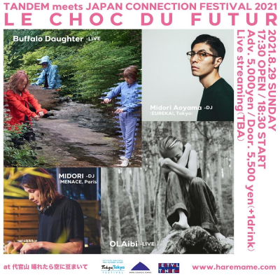 コロナ禍で海外との往来が制限される中、今回はBuffalo DaughterとOLAibi という豪華な組み合わせのライブパフォーマンスと、パリからの中継でMIDORI (MENACE) と、Midori Aoyama (EUREKA!, Tokyo) をDJに迎えたスピンオフイベントを開催! 人数限定の会場有観客+全世界に向けてストリーミング配信します。