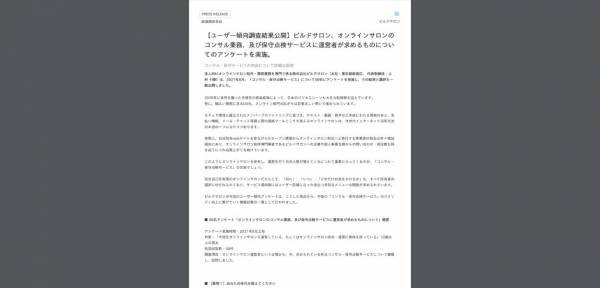 法人向けオンラインサロン制作・開発業務を専門で承る株式会社ビルドサロン(本社:東京都新宿区、 代表取締役:上村 十勝)は、2021年8月「コンサル・保守点検サービス」について50名にアンケートを実施し、その結果と講評を一般公開しました。